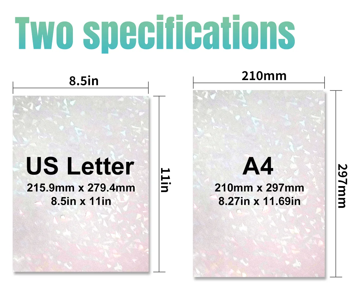 | Size : 8.5 Inch * 11 Inch / 210MM * 297MM | Applicable Printer : Inkjet Printer |